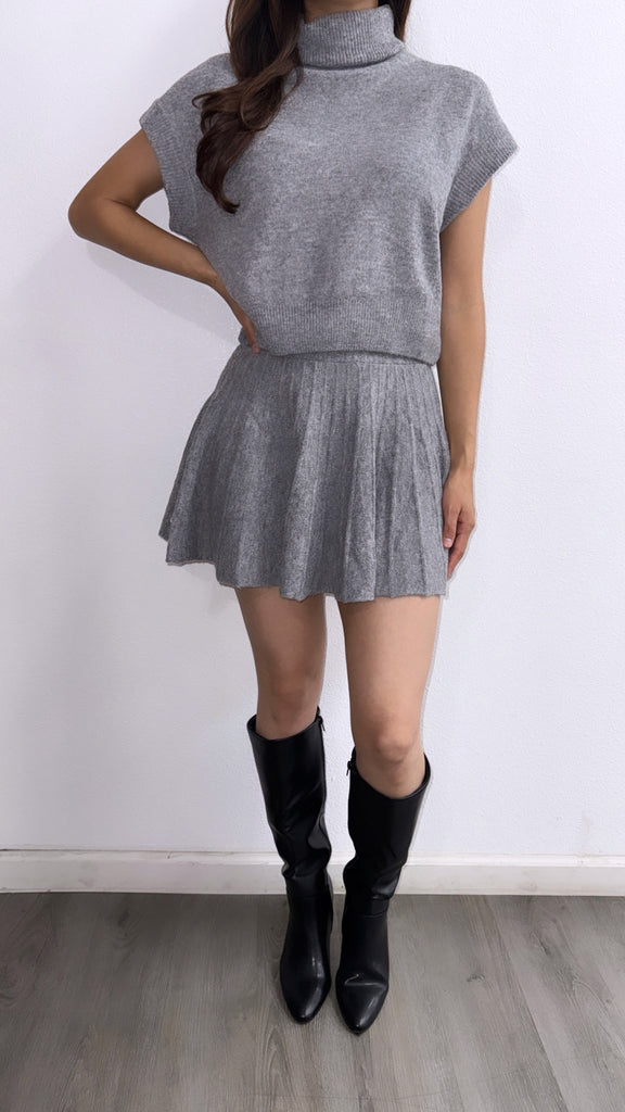 Harvest Moon Knitted Pleated Mini Skirt Set- Heather Grey
