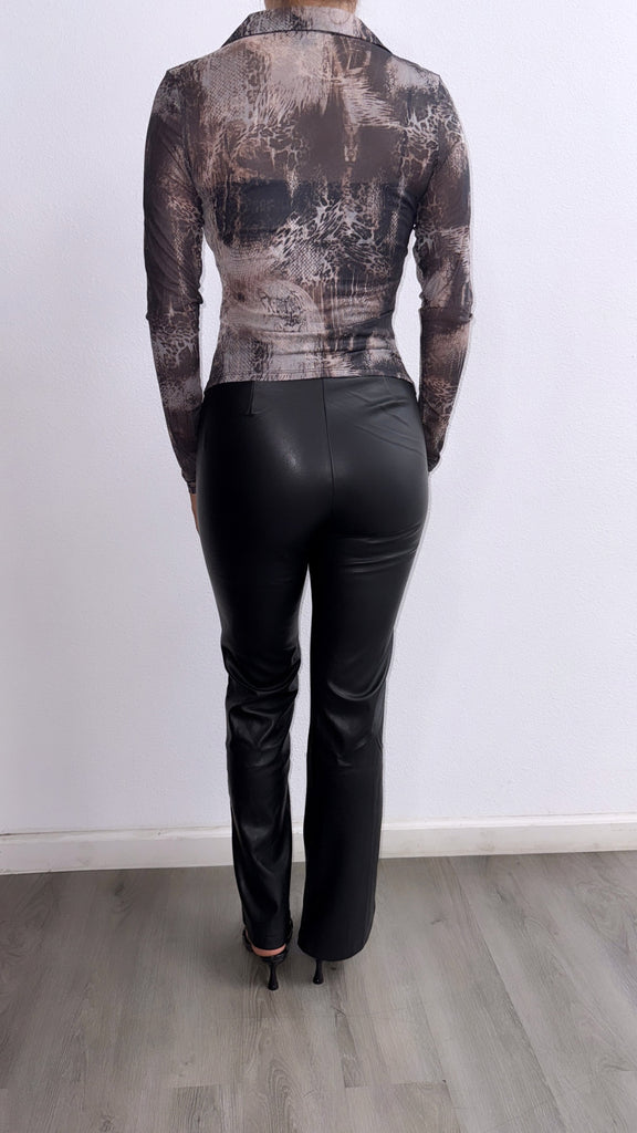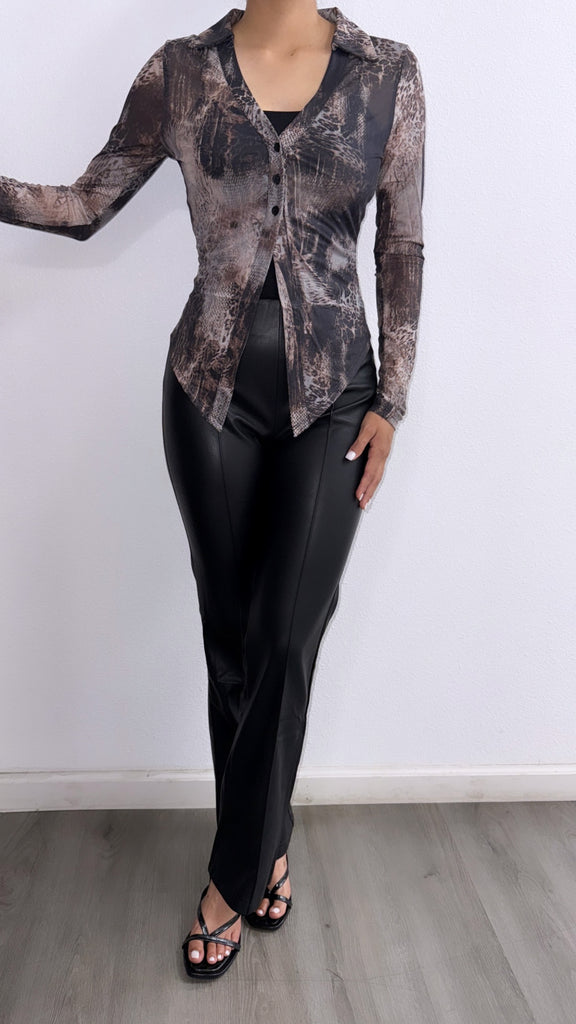 Meridan Sheer Leopard Button Down Top- Black Multi