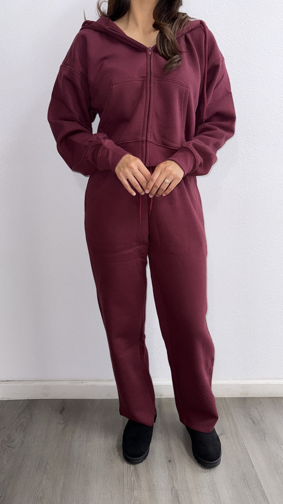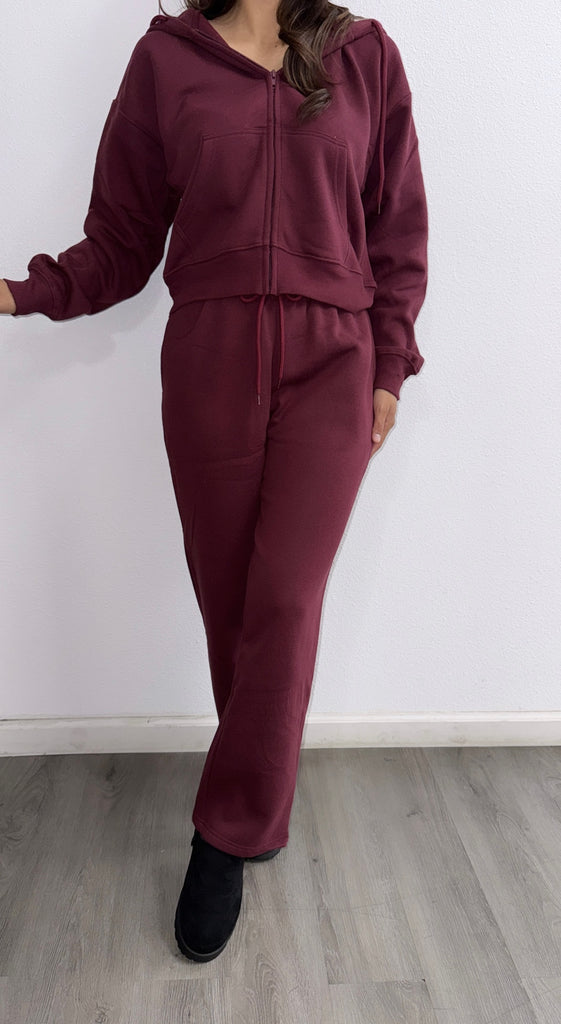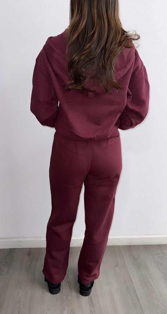 Sunday Afternoon Straight Leg Sweat Set- Burgandy