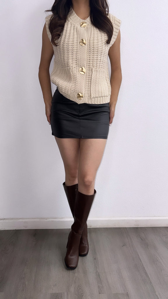 Tammy Button Down Sweater Vest- Cream